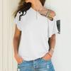 Letnia Nowość Gorący Produkt Europejski i Amerykański Codzienny Asymetryczny Krótki T-shirt z Przekładanym Dekoltem na Ramię dla Kobiet
