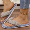 Indoor Mix Color Women's Fur Slippers Lightweight Non Slip Cotton Slippers for Woman Winter Open Toe Plush Flip Flops Female