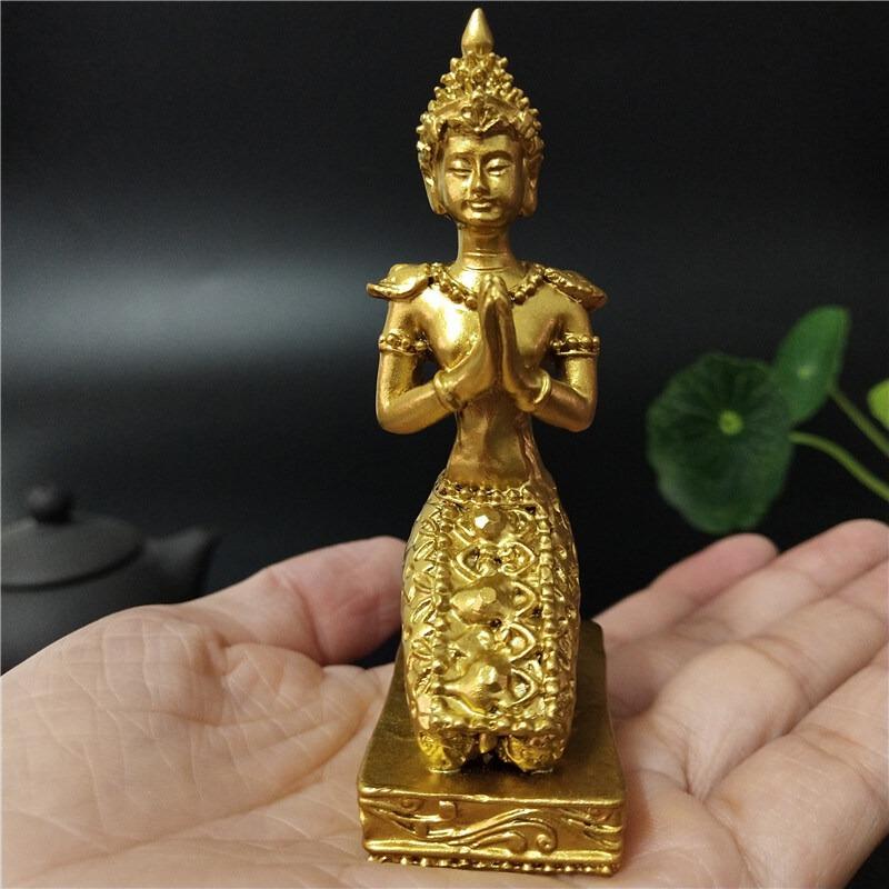Złota Statua Buddy z Tajlandii Dekoracja Domu Hinduistyczna Feng Shui Medytacja Modlący się Rzeźba Buddy Ozdoby Statuetki