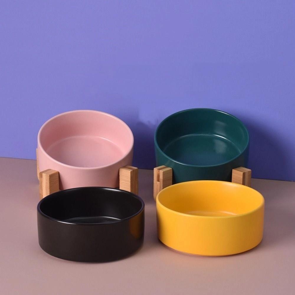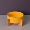 Large Caliber Ceramic Cat Bowl Anti-Overturn Cervical Spine Cat Water Food Bowl No Spill with Wooden Rack High Footed Dog Bowl
