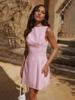 Letnia, bezrękawnikowa sukienka garniturowa, europejski i amerykański styl, nowy temperament, odkryte plecy, obcisła i cienka, krótka sukienka