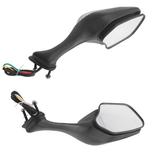 Black Aluminum Motorcycle Side Mirrors with Lights - 1 Pair, Suitable for Various Models