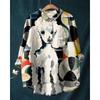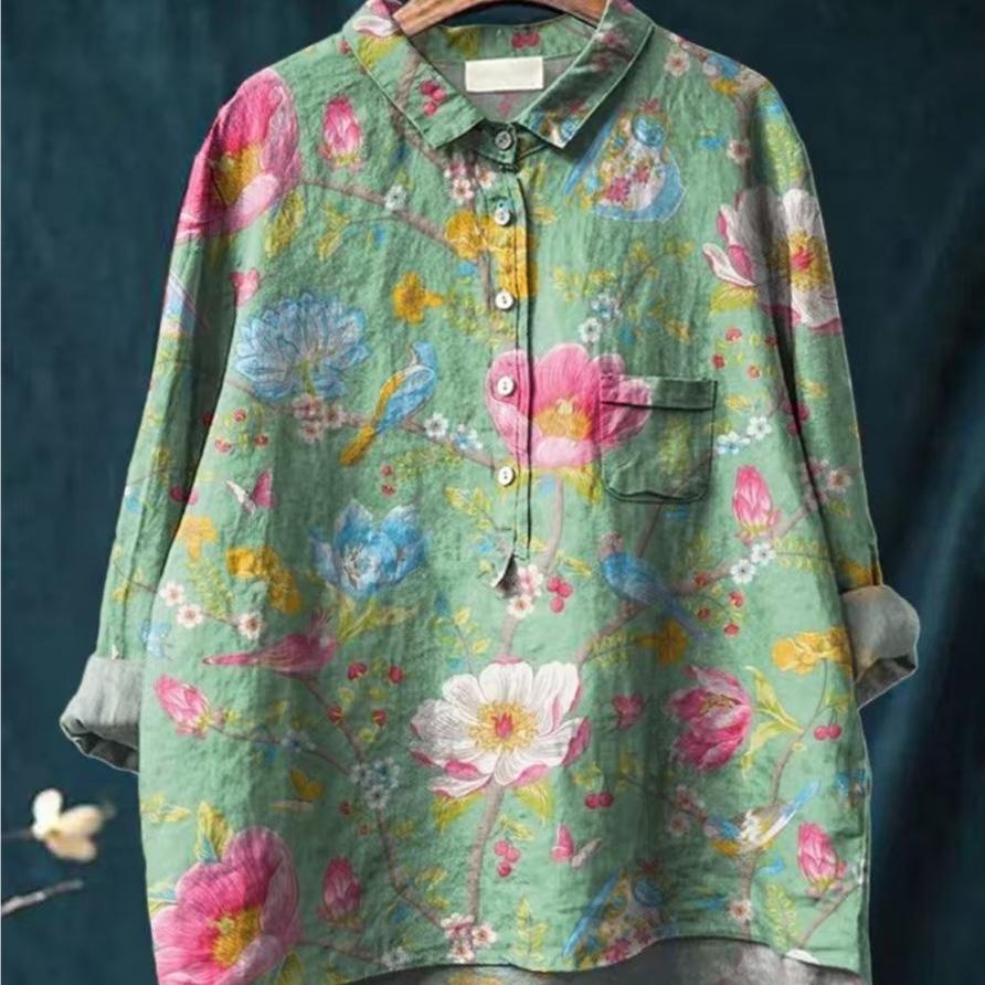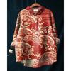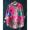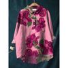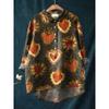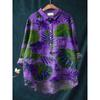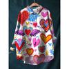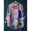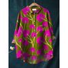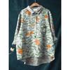 Ladies' Casual Loose Fit Floral Printed Button Up Shirt -Fish School Pattern