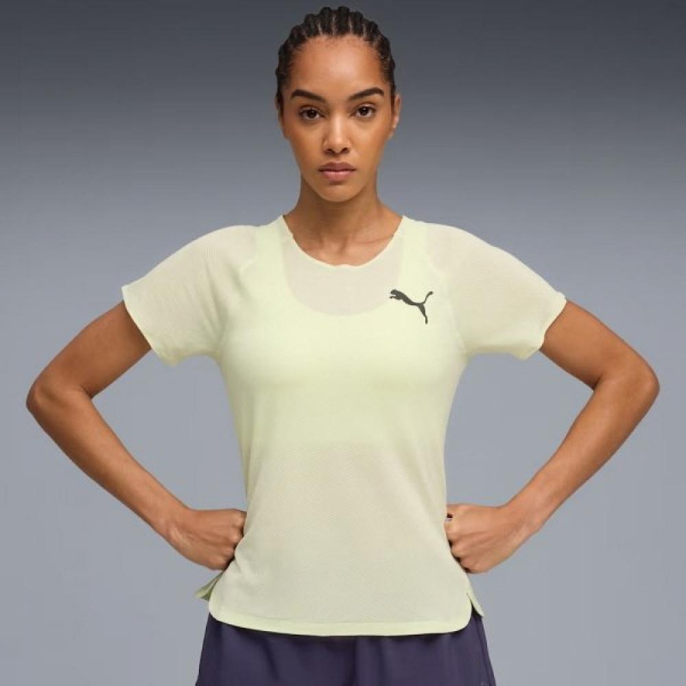 The Puma 529122 38 Women's Running Short-Sleeve T-Shirt is a high-performance sportswear designed under the Lightspeed line. It provides a lightweight feel and excellent breathability, ensuring comfort during workouts, while the moisture-wicking feature rapidly expels sweat. The fit is tailored for the female silhouette and made from stretchy fabric, maximizing mobility, making it suitable for various forms of exercise.