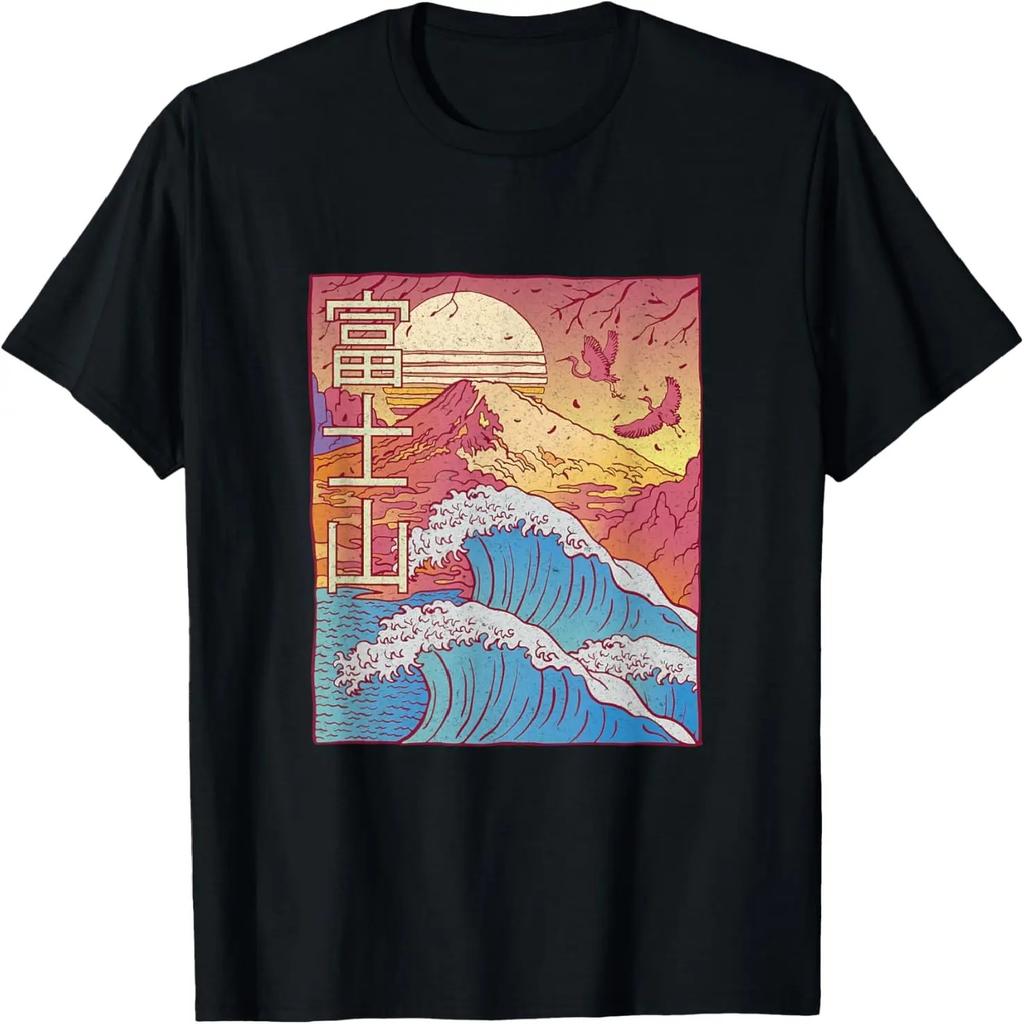 Koszulka z motywem góry Fuji i fal oceanicznych