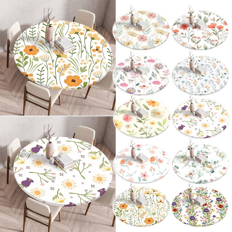1PC Waterproof Floral Tablecloth Round Fitted Elastic Edged Tablecloth Picnic Table Cover Farmhouse Decorations Picnic Kitchen