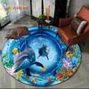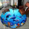 3D Seabed Illusion Underwater World Dolphin Round Area Rug,Carpet for Living Room Bedroom Sofa Playroom Decor,Non-slip Floor Mat