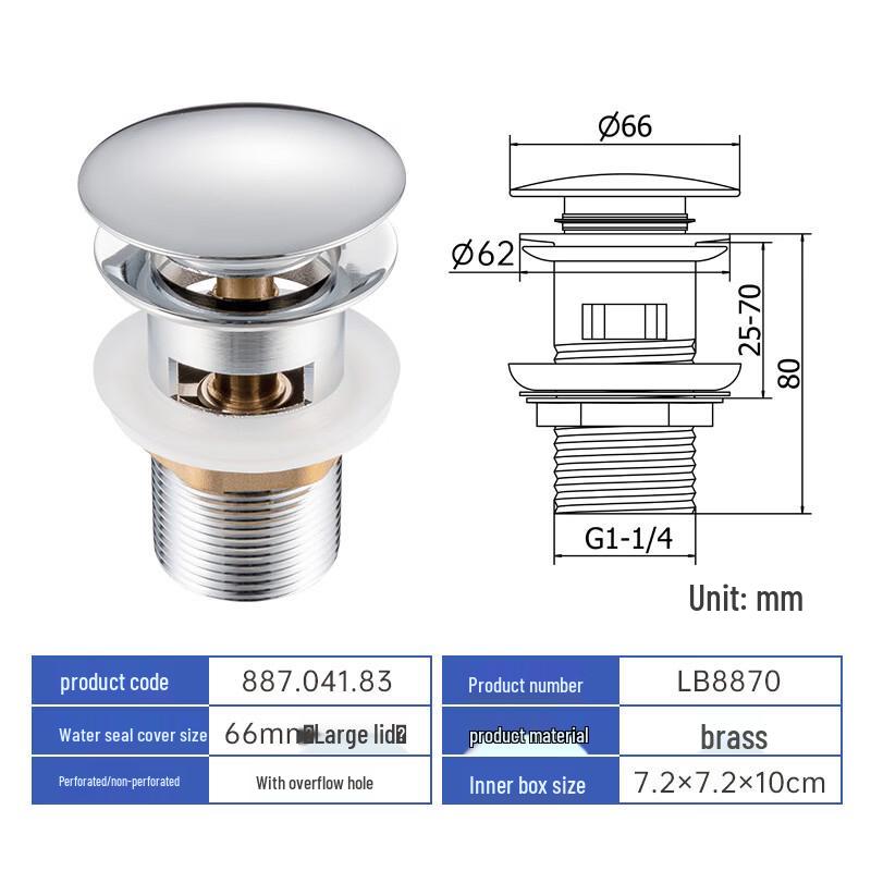 Mosiężny korek umywalkowy typu pop-up z przelewem