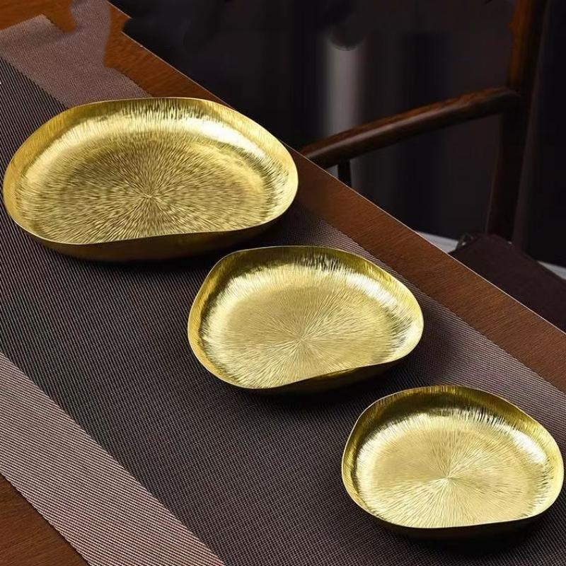 Lotus Leaf Flower Texture Shape Brass Coffee Cup Tray,Retro Teacup Saucer Home Cheese Food Plate,Snack Disc Table Decoration