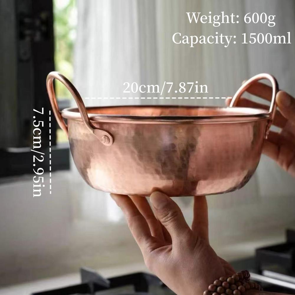 Stary Miedziany Garnek, Garnek na Jedzenie Kempingowy Naczynie do Gotowania Duszenia i Gotowania Makaronu Ręcznie robiony Młotkowana Tekstura 20 cm Garnek Ręczny