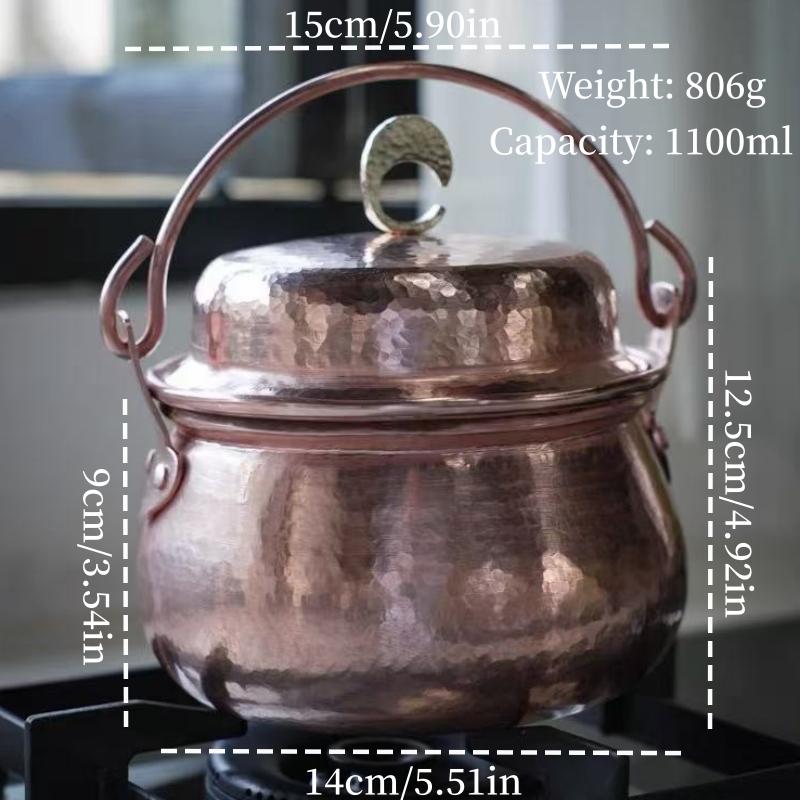 Handcrafted Vintage Copper Pot,Portable Camping Pot With lid Cooking Utensil Simmering Food Stewing,15 cm Hammer Texture Pot