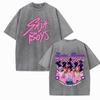 KPop Demon Hunters Saja Boys Spłowiony T-shirt Vintage z Okrągłym Dekoltem i Krótkim Rękawem Bawełniane Koszulki