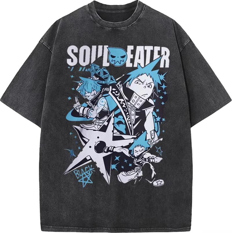 Japonia Anime Soul Eater Czarna Gwiazda Nadruk Koszulka Męska Spierana Koszulka Casual Luźna Koszulka Harajuku Męska Manga Retro Koszulka
