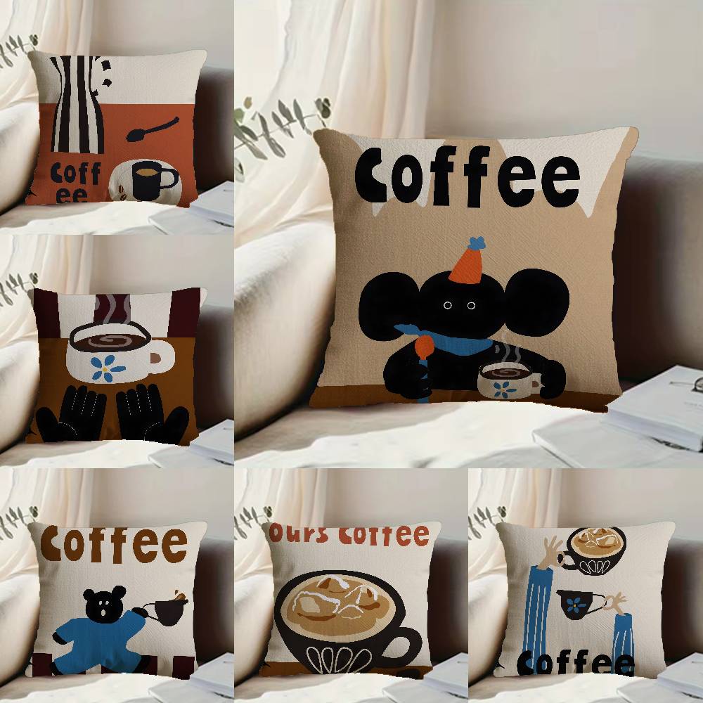 Creative Coffee Illustration Pillow Case Anti-dustmite Pillowcase Invisible zipper silky short plush Sofa cushion cover