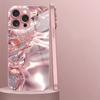 3D Water Ripple Pattern Pink Metallic Paint Glass Hard Phone Case For iPhone 17 16 15 14 13 12 11 Pro Max Plus 16E 17Air Cover