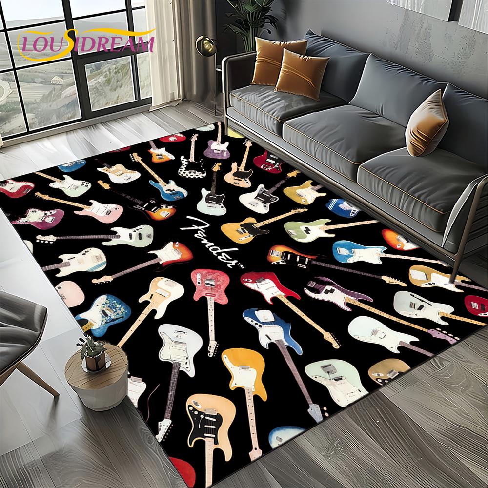 27 Styl Nowy Fender Retro Gitara Instrumenty Muzyka Dywan 3D do Salonu Sypialni Domu Dekoracja Sofy, Antypoślizgowa Mata Podłogowa