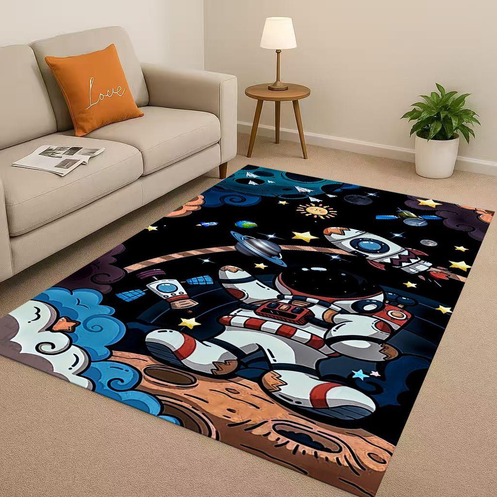3D Cartoon Astronaut Spaceman Planet Living Room Non Slip Area Rug Carpet for Bedroom Playroom Sofa,Home Decor Doormat Christmas