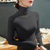 Damska koszulka termiczna jesień zima nowa wszechstronna gładka wysoki dekolt długi rękaw dwustronny polar warstwa wewnętrzna stylowy top