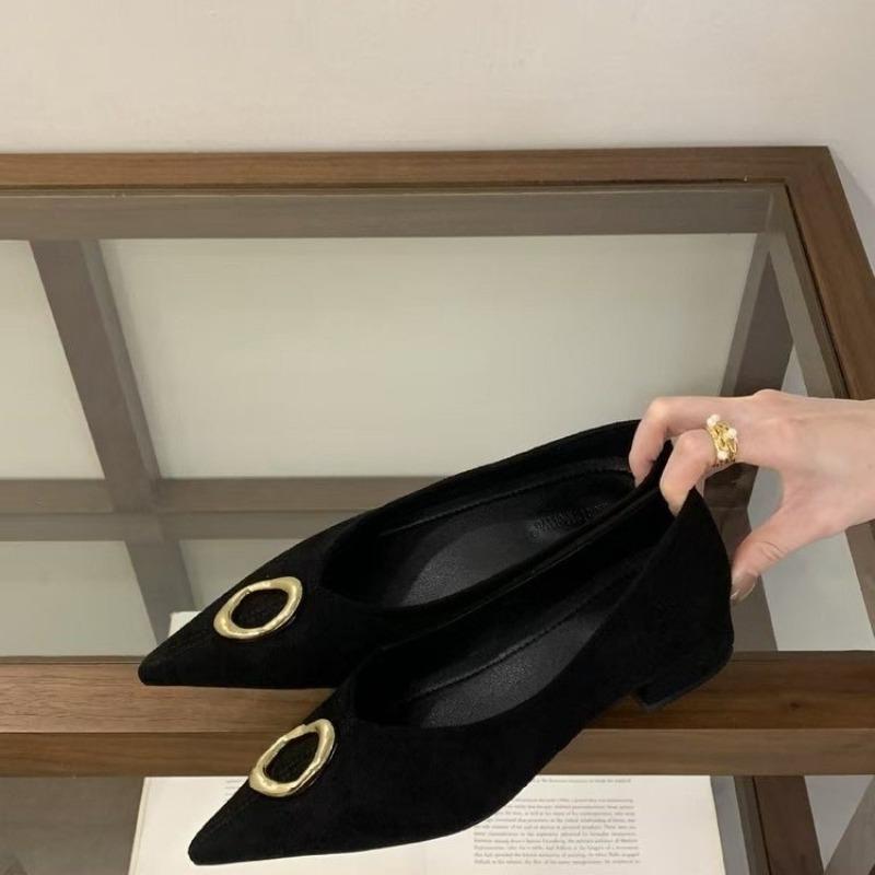 French Pointed Toe Shallow Single Shoes 2026 Spring New Metal Buckle Block Heel Temperament Women's High Heels