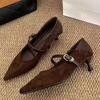 French Retro Pointed Toe Shallow Single Shoes Women's Spring and Autumn One-word Buckle Strap Versatile Kitten Heels