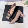 French thick-heeled high-heeled shoes are not tired of feet, spring and autumn thick-grained soft leather middle-heeled shoes, square head, shallow