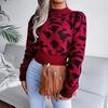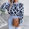 Leopard Print Knitted Crop Sweater Women Autumn Winter Long Sleeve O Neck Nipped Tops Sizes S to L