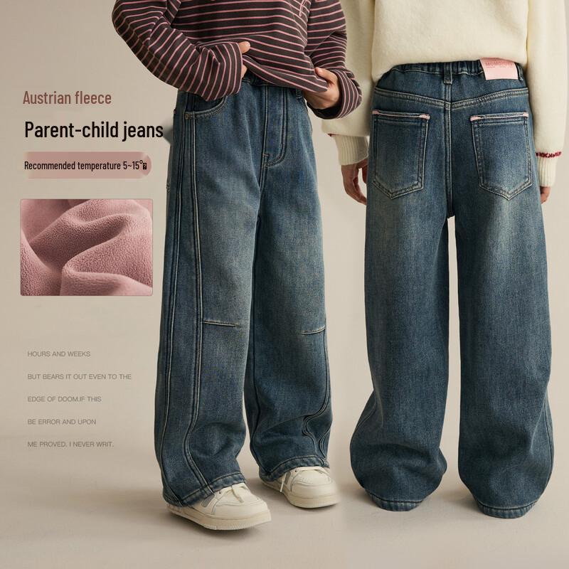 Rodzinne jeansy z prostymi nogawkami, podszyte polarem, dla dziewcząt i kobiet
