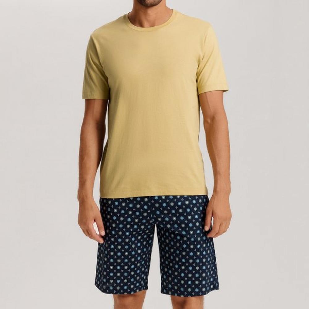 The HANRO Living Short Sleeve T-shirt (75050_straw) is a men's round neck short sleeve T-shirt with a sporty and modern design. It is suitable for everyday underwear or easy wear and is made of 100% cotton for a soft and comfortable fit.