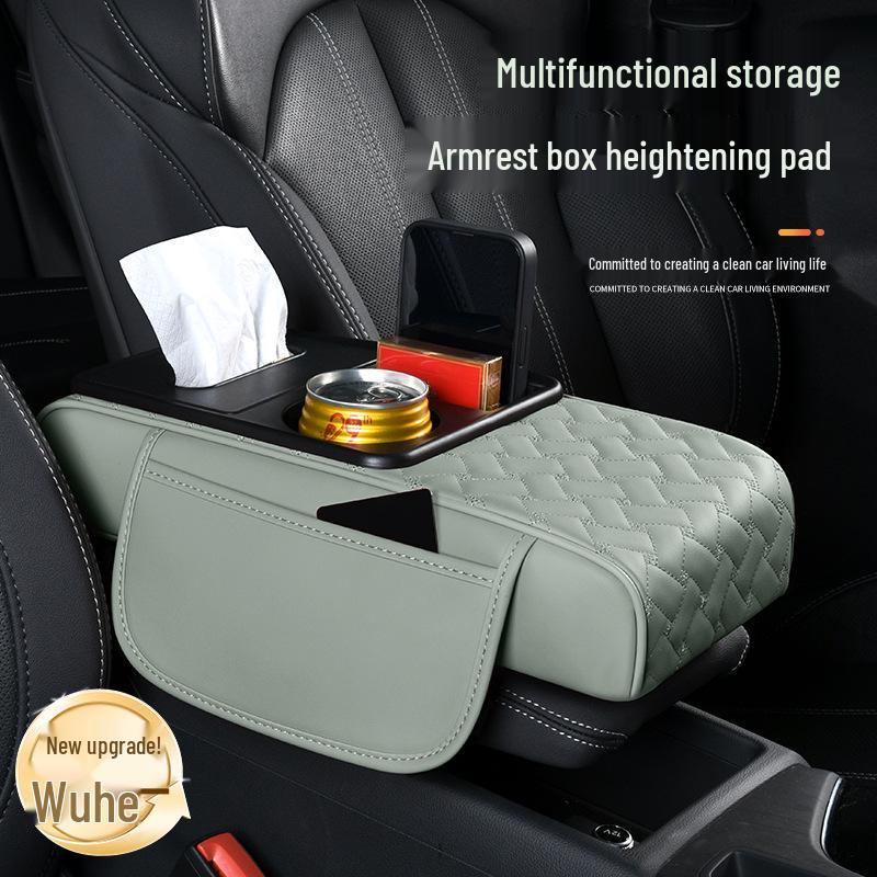 A-Segment Compact Car Armrest Box & Cup Holder Mat with Tissue Storage and Heightening Pad