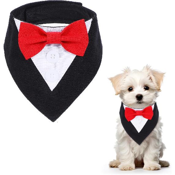 Formal Dog Tuxedo, Dog Bandana Collar with Bow Tie Costume for Small Dogs - Adjustable Dog Suit for Parties & Weddings