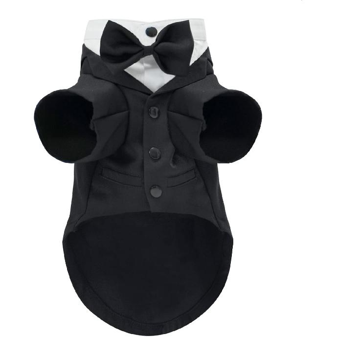 Dog Tuxedo Suit, Formal Pet Shirt Costume Wedding Attire with Black Bow Tie, Pet Outfit Apparel for Small Dogs Cats (Black, Large)