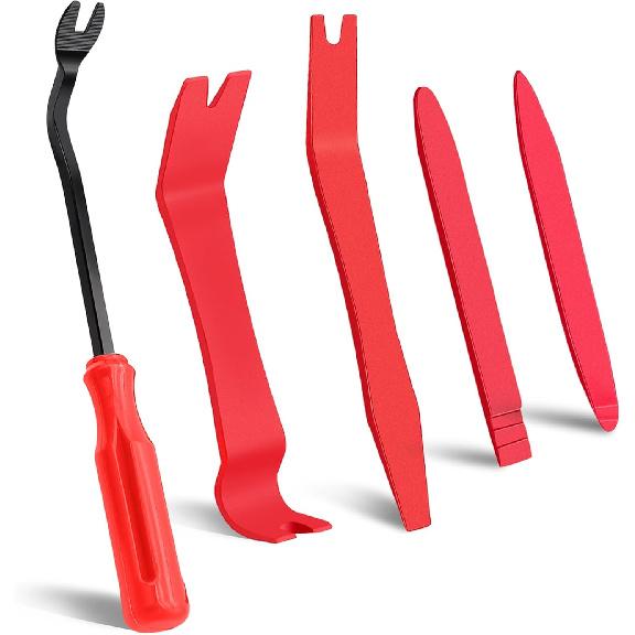 Wuiil AXELECT 5 Pack Auto Trim Removal Tool Kit, Car Panel Door Window Tools Kit,Auto Clip Fastener Remover Pry Tool Set(Red)