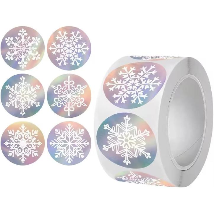 500 Pcs Holographic Snowflake Stickers,Christmas Adhesive Stickers Colorful Round Label Sticker for Envelope Cookie Candy Box (3.8cm)