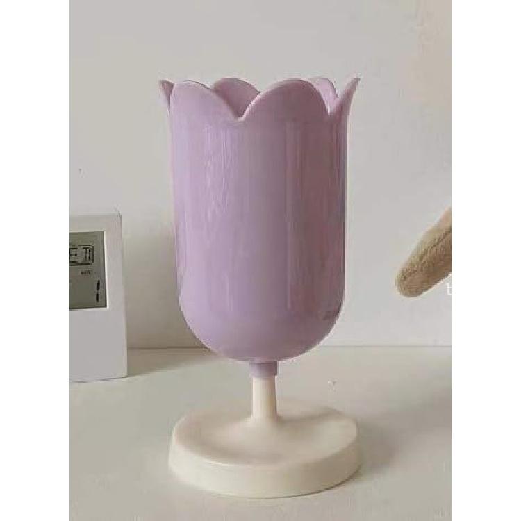 Pen Holder for Desk, Plastic Tulip Pen Holder Girl Small Makeup Box Cute Stationery Organizer Pencil Stand Case Pencil Cups Desktop Decoration Pencil
