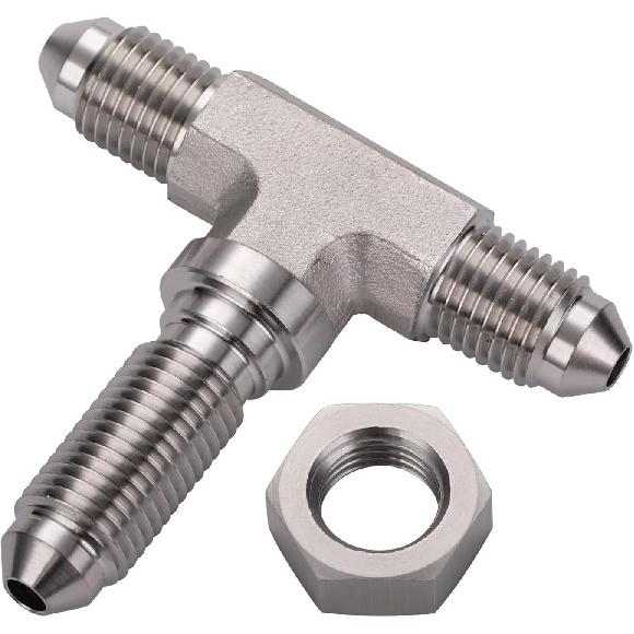3AN Male Stainless Steel Bulkhead Tee T Brake Hose Fitting Adapter with Nut