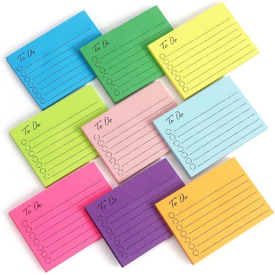 Eastern Wolf 9 Pads to Do Lined Sticky Notes, 9 Bright Multi Colors Self-Stick Note Pads, 3x4 Inch with Line Adhesive Memo Sticky Notes Notepad, 50