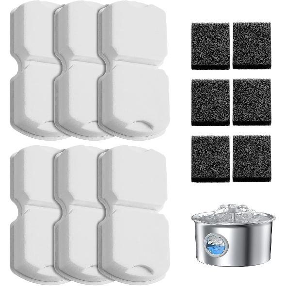 IHOUONE Official Cat Fountain Filter: 12 Cat Water Fountain Filter Replacement - 6 Carbon Filters & 6 Foam Filters - Suitable for IHOUONE Stainless