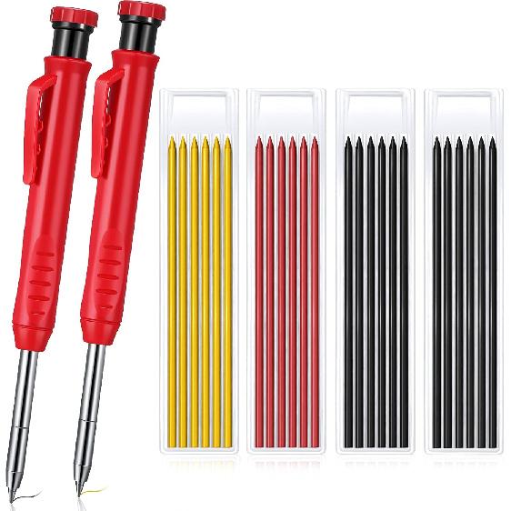 Package quantity: what you will get is a woodworking pencil set containing 26 pieces of tools, namely, 2 marking pencils, 24 replacement pencil s in red, yellow and black, 12 for black, 6 for red, 6 for yellow, which can be reapplied for your carpentry activities
