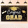 Graduation Party Decorations - Blue Gold Congrats Grad Class of 2025 Backdrop Banner Large Sign Wall Decorations Photography Background Party