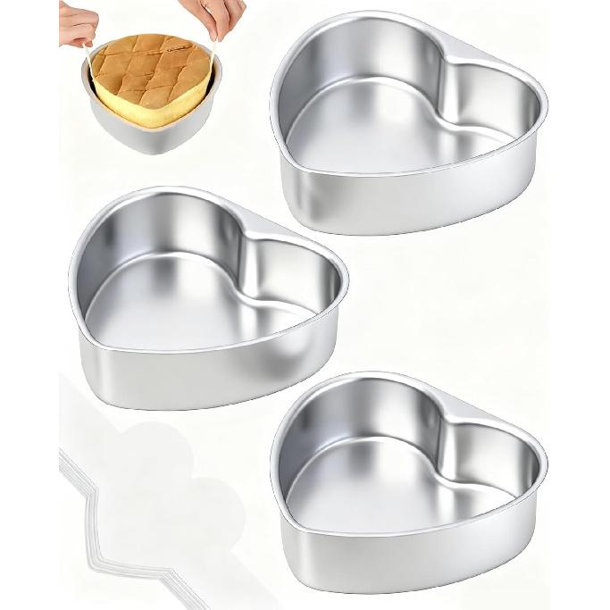 8 Inch Heart Cake Pan, 3 Pcs Aluminum Alloy Non Stick Heart Cake Mold with 60 Pcs Pan Liners for Kitchen Birthday Wedding