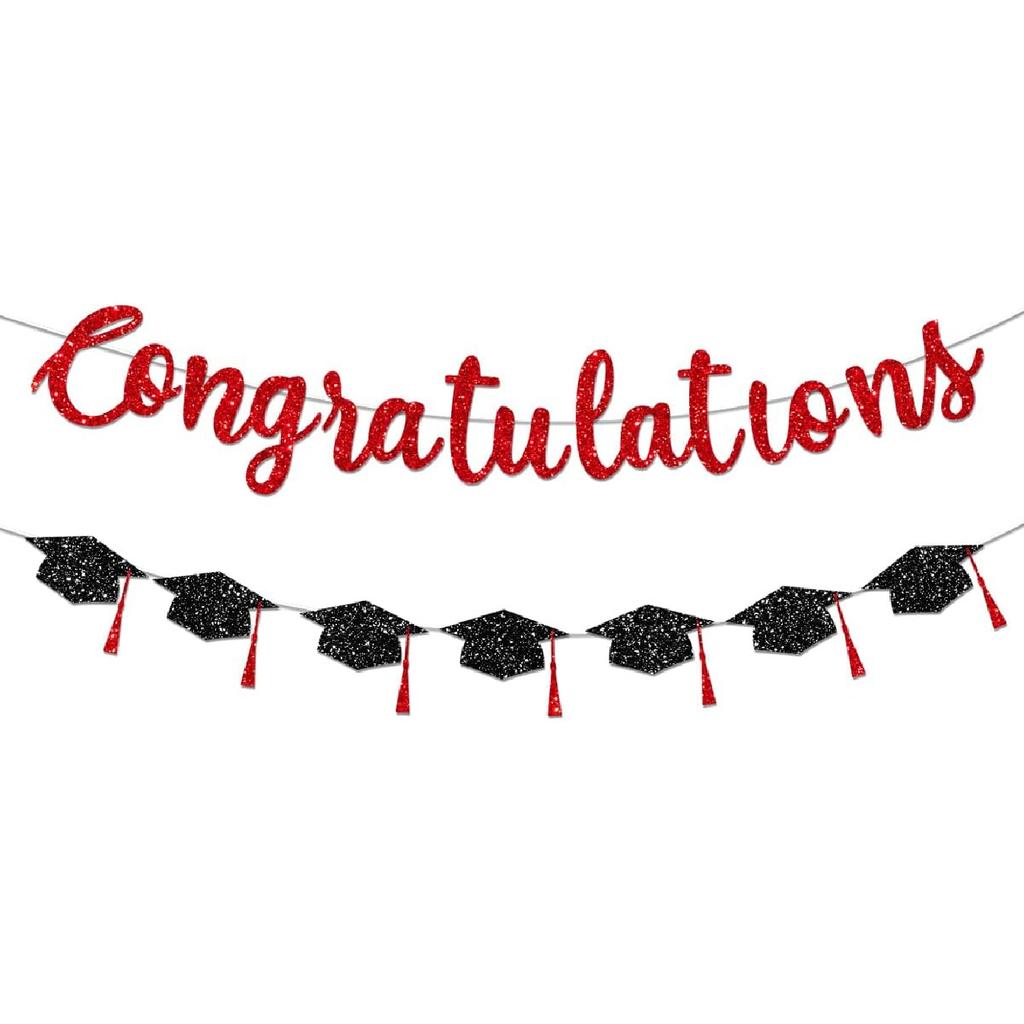 Congratulations Banner Graduation Decorations Class of 2026 Red Glitter Congrats Grad with Tassel Party Decor College High School Favors Black