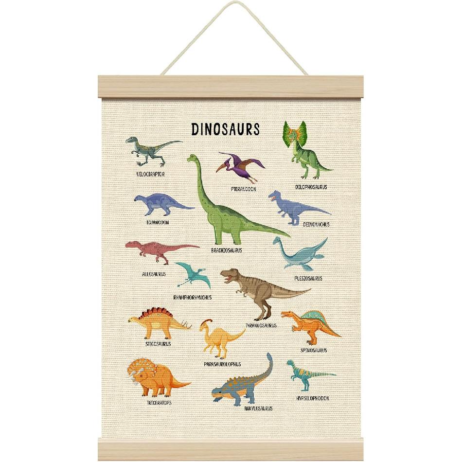 ZEDEV Dinosaur Wall Decor, Poster Hanger with Wood Frames 12x16 Inches, Dino Educational Canvas Wall Art, Artwork Hanging Kit for Boy Toddler Room