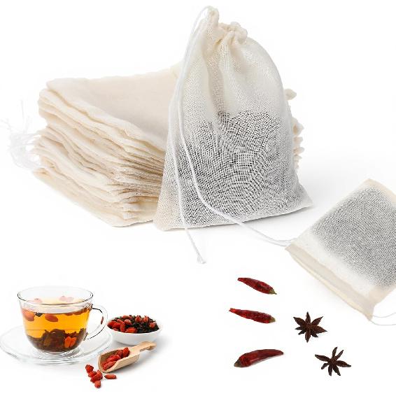 Reble Tea Bags for Loose Tea 50PCS Cotton Sachet Drawstring Packing Bag Spice for Cooking Reble Bag Loose Teas, Sachet Cheesecloth Cold Brew Coffee
