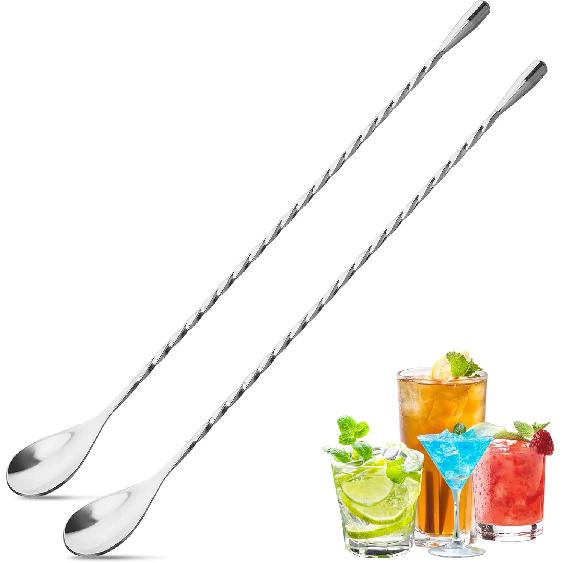 2Pcs Cocktail Spoon Long Handle Bar Spoon - 12" Metal Spoons Drink Mixers for Cocktails Stainless Steel Spoons Stirring Spoons for Coffee Bar