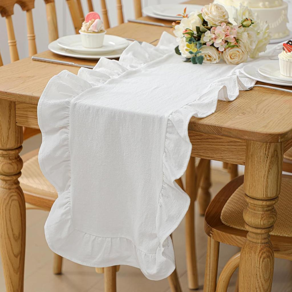 Elegant Ruffled Design: this white table runner features delicate ruffled edges, adding a touch of rustic charm to your dining table