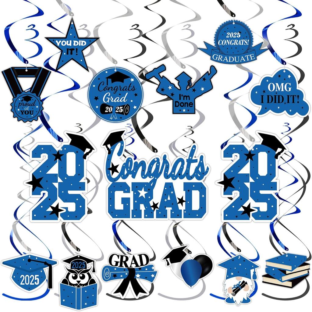 【Package Included】 The graduation hanging swirl decorations come with totally of 36 pcs. It includes 15 pcs hanging swirl decorations with 15 cutouts, such as “2025, Congrats Grad, OMG I DID IT, I’m Done, star, cap, diplomas, etc. ” and 6 double foil swirls decorations without cutouts. These hanging swirl decorations will make your graduations party unforgettable, impressing on others.
