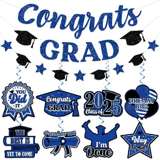 Black and Blue Graduation Party Decorations 2025 Congrats Grad Banner, NO-DIY Graduation Decorations Class of 2025 Congratulations Graduate Banner