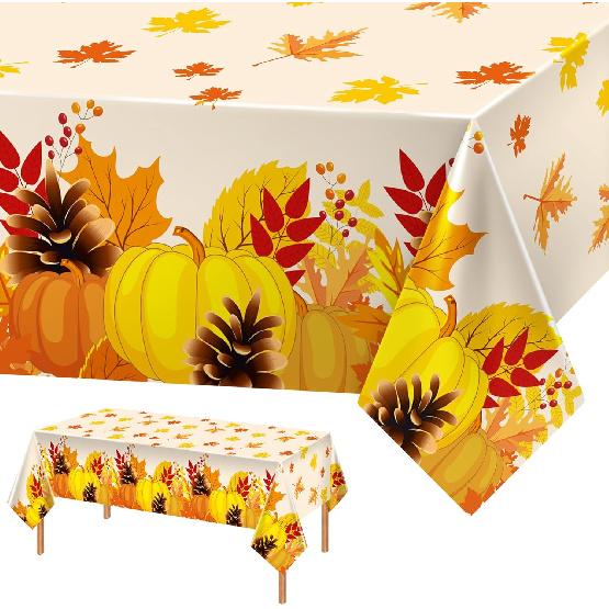 Thanksgiving Fall Disposable Tablecloth, 2 Pack Rectangle Fall Pumpkin Tablecloth Thanksgiving Table Covers Plastic for Fall Theme Harvest Party