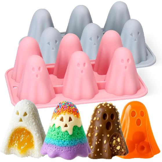 2Pcs Halloween Silicone Molds, 3D Ghost Silicone Mold for Food, Non-Stick Cute Ghost Cake Pop Mold for Jelly Chocolate Candy Gummy Crayon Resin