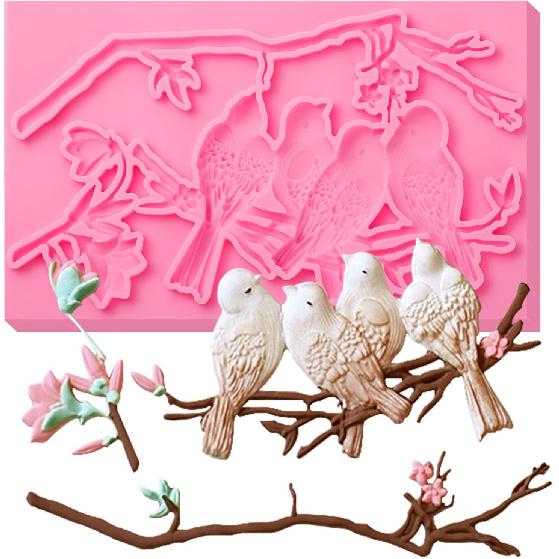 Bird Fondant Mold: You can get 1 piece of luxury large Magpie silicone mold. There are 4 beautifully detailed bas-reliefs of birds, branches and leaf patterns. Finely crafted, bird candy molds will be great for adding beautiful details to your craft and cake projects
